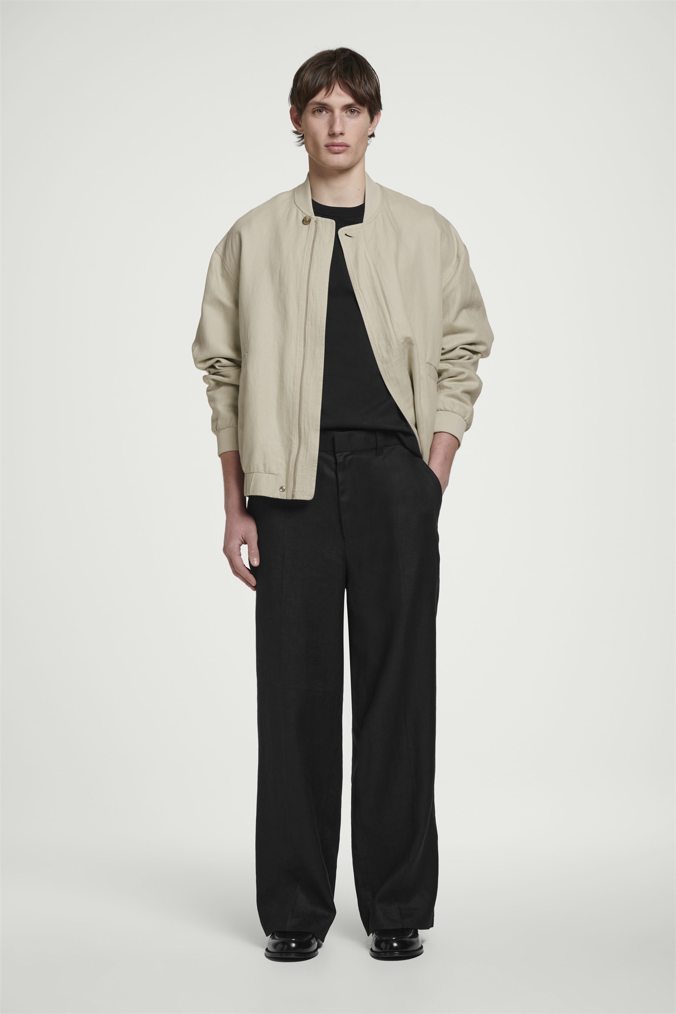 Эти льняные брюки, отличающиеся легкостью и плавностью, представляют собой непринужденный вариант пошива. Они имеют широкий прямой крой, непринужденную форму и чистую отделку благодаря потайным застежкам и простым карманам. Свободный крой Застежка на крючок и молнию Переработанный лен изготавливается из отходов прядильного производства или отходов раскроя тканей. Отходы механически перерабатываются и прядутся в новую пряжу Оболочка: 70% лен, 30% переработанный лен. Подкладка карманов: 100% хлопок. Без учета отделки / Машинная стирка Внутренняя длина ноги размера EU 48 составляет 75,7 см / Модель носит размер EU 48