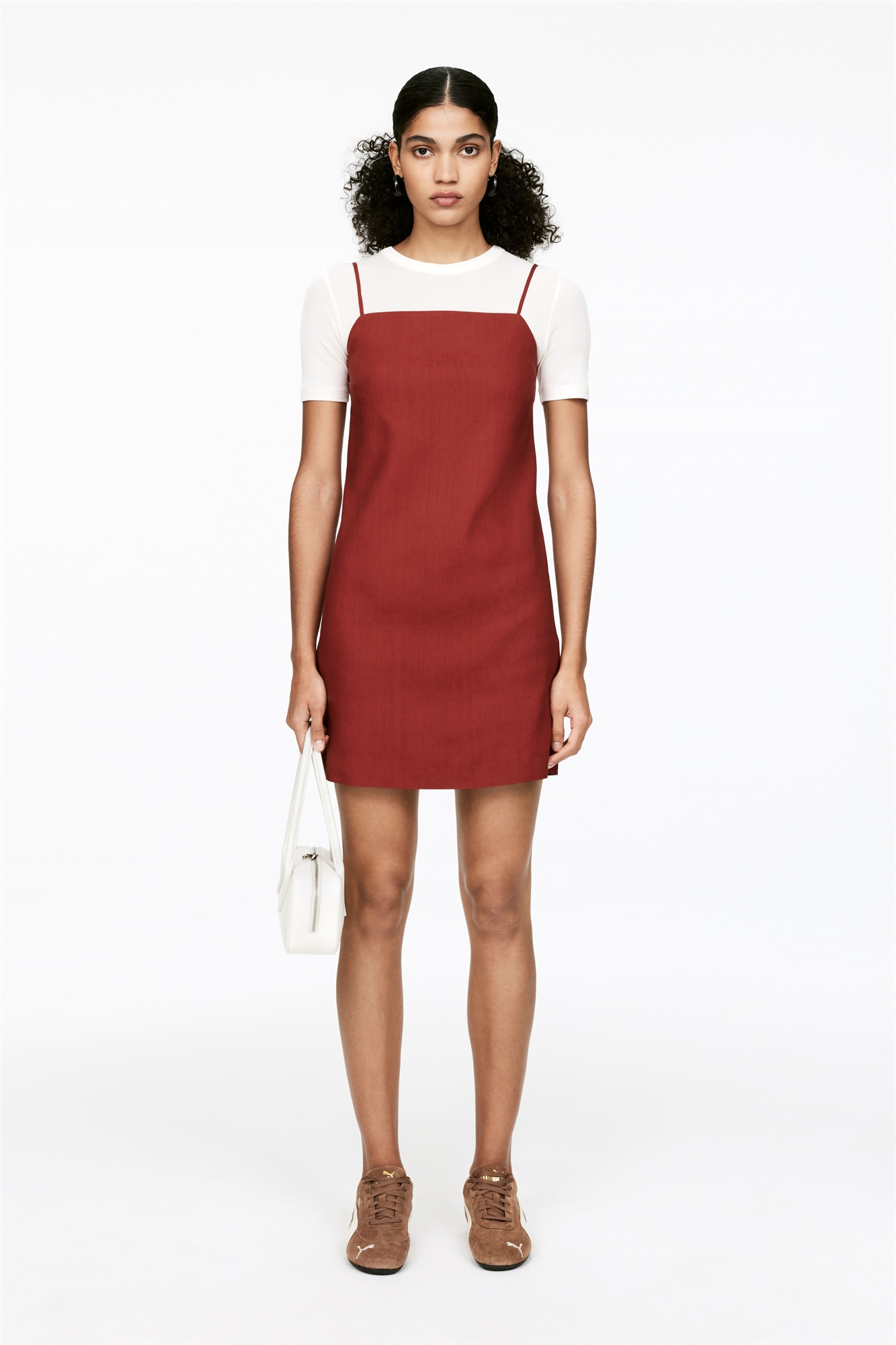 Мини-платье на бретелях из льняной ткани. Скрытая застежка-молния сзади. Облегающий крой.