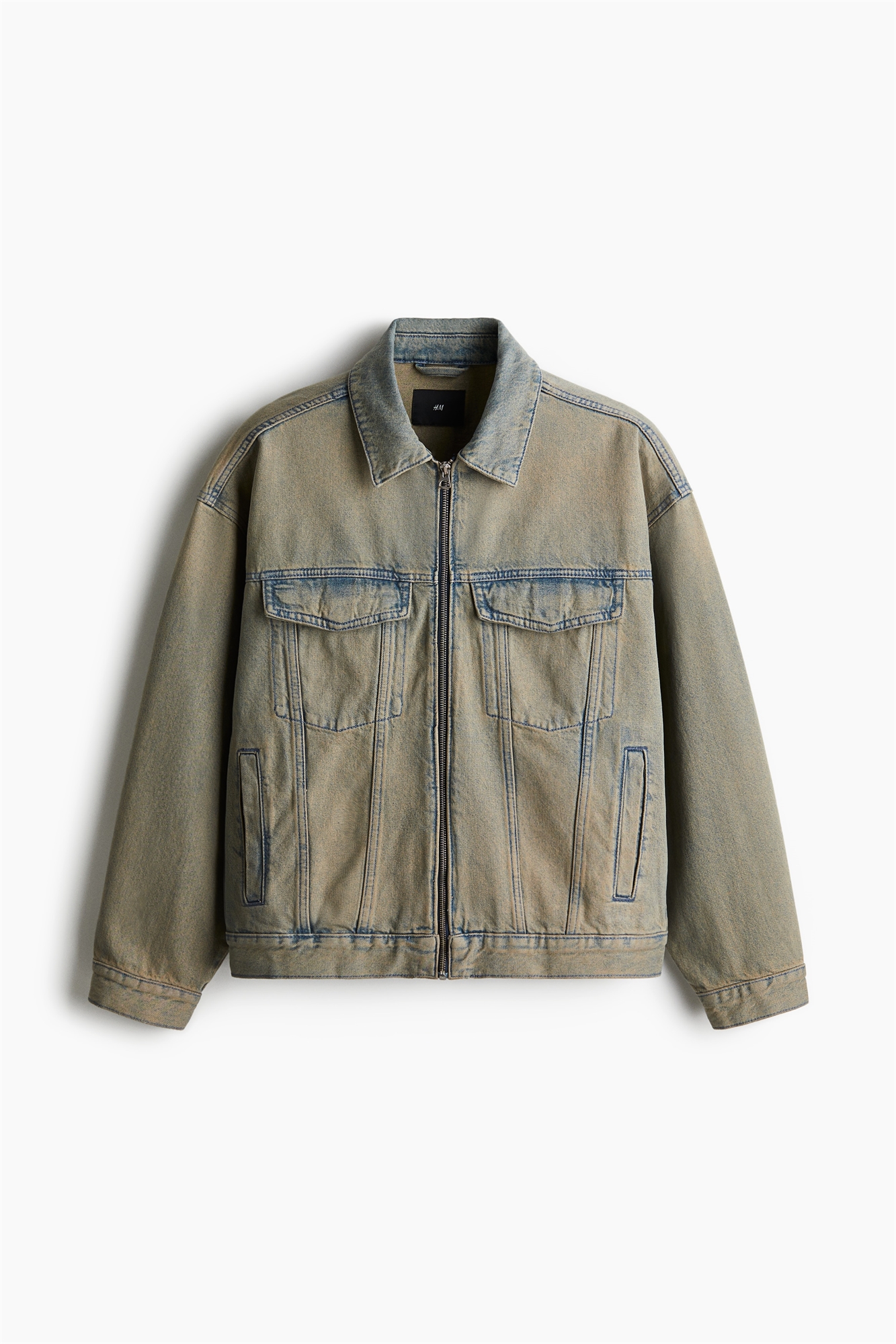 Куртка из плотного хлопкового денима с воротником, застежкой на молнию спереди, передом, передом, боковыми карманами и накладными нагрудными карманами со скрытыми кнопками. Длинные рукава, манжеты на пуговицах, регулируемая застежка и пуговицы по бокам. Подол прямого кроя. Свободный крой для пышного, но не чрезмерно большого силуэта.