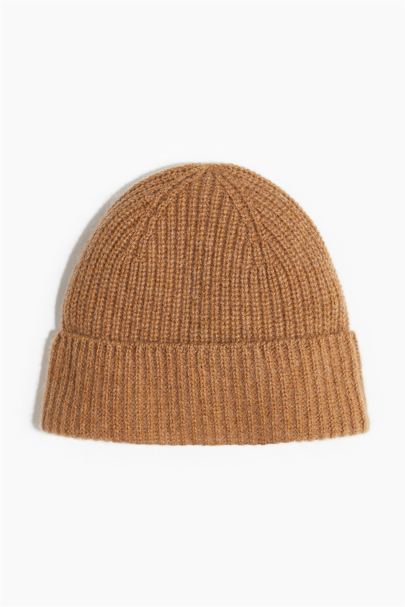 Ребристая шапка из мягкого, теплого кашемира с широким воротом.