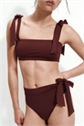 Трусики-бикини на подкладке с высокой талией, со сборками и завязками с одной стороны и вырезом сзади.