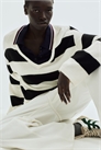 Джемпер свободного покроя из мягкого тонкого трикотажа с V-образным вырезом горловины, спущенными плечами и длинными рукавами. Окантовка вокруг выреза, на манжетах и подоле.