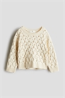 Джемпер из мягкого хлопка с дырками. Круглый ребристый вырез, спущенные плечи, длинные рукава, манжеты и подол в рубчик.
