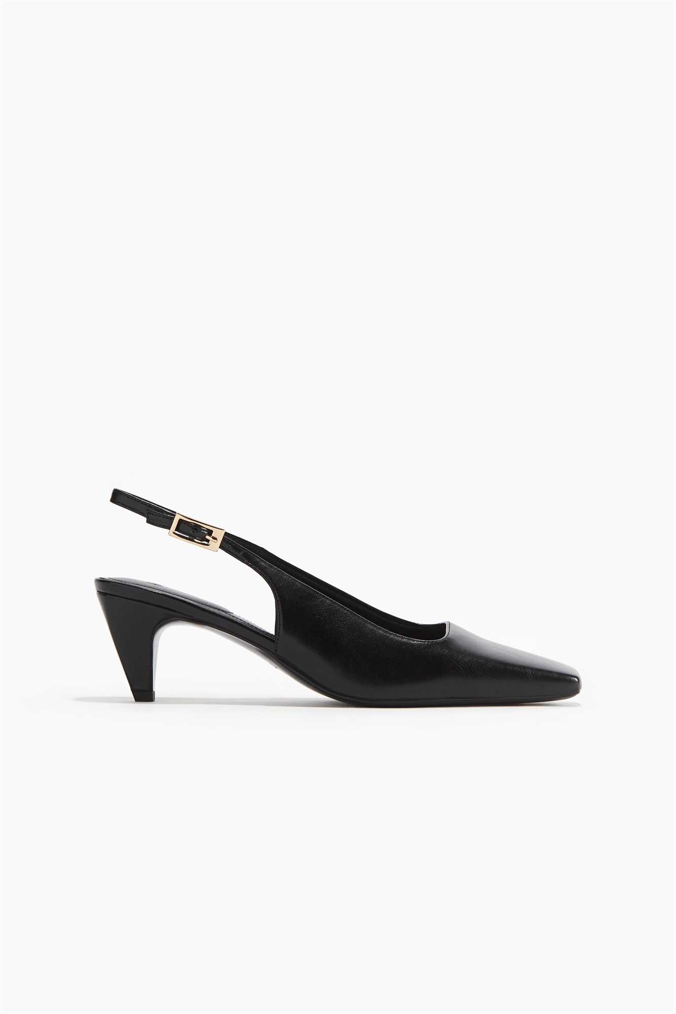 Придворные туфли из лакированной ткани с закрытым конусообразным каблуком, долотообразным носком и узким регулируемым ремешком на каблуке с прямоугольной металлической пряжкой. Атласная подкладка. Каблук 5,5 см.