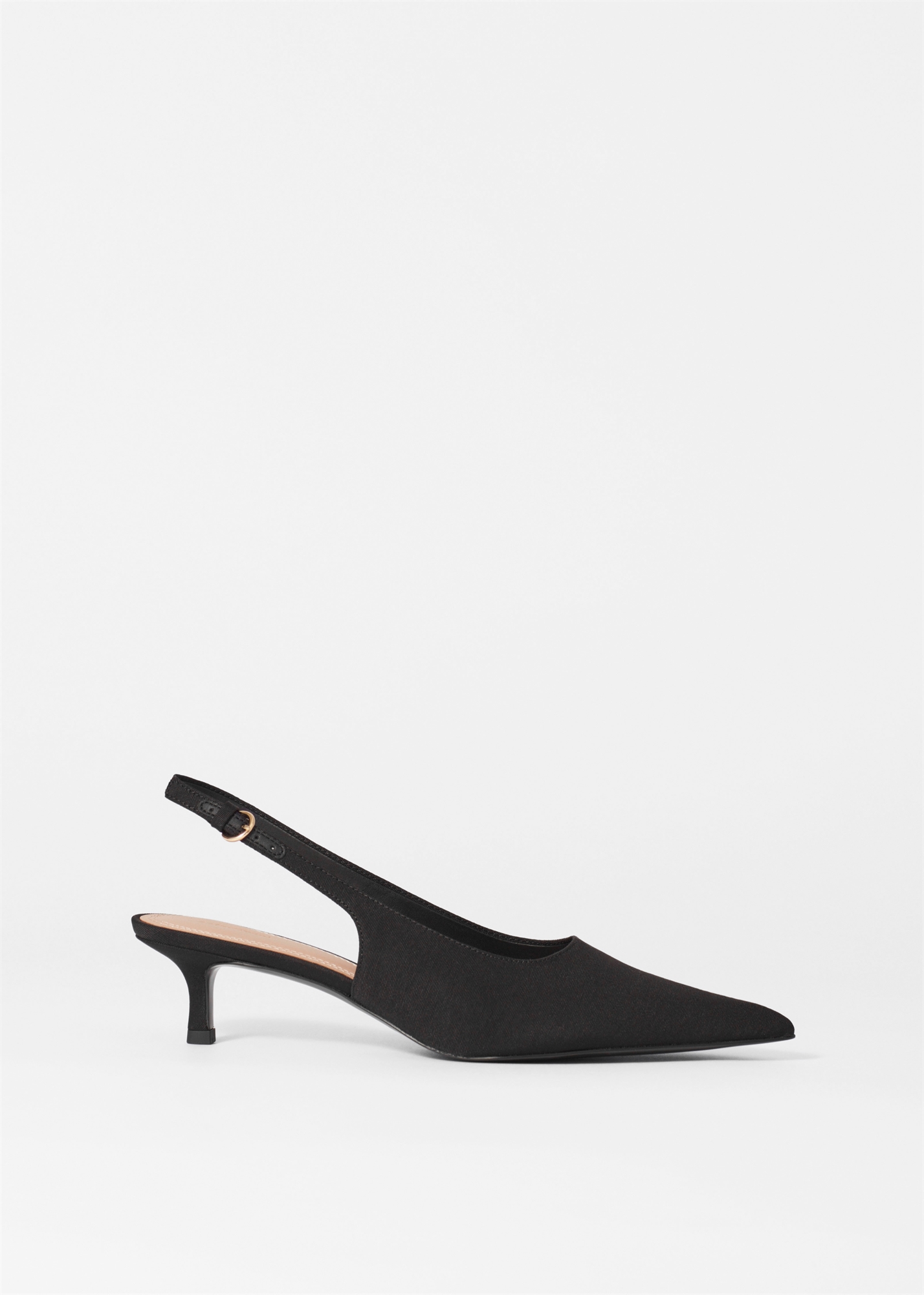 Эти нестареющие туфли с заниженной спиной и элегантным заостренным носком изготовлены из блестящего атласа. На подкладке и подошве из мягкой кожи наппа и с регулируемыми пряжками золотого цвета. Высота каблука: 4,5 см / 1,8 дюйма