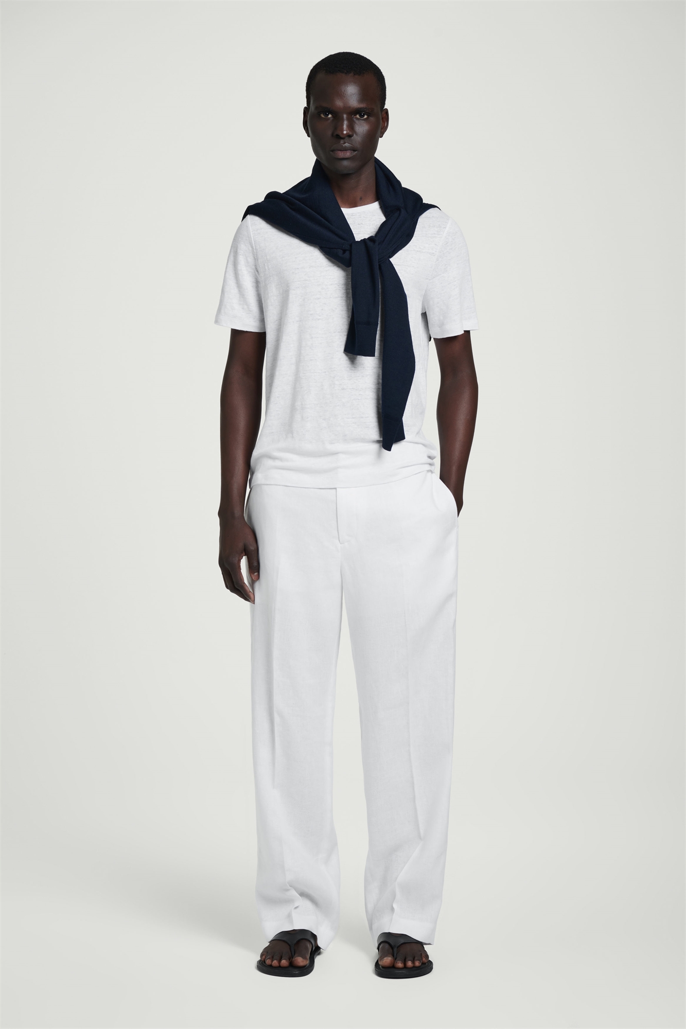 Эти брюки с прямыми ногами, выполненные из натурального легкого льна, имеют эластичный пояс, боковые прорезные карманы и заутюженные складки. Носите их с рубашкой или футболкой. Регулярный крой Застежка на крючок и молнию Переработанный лен изготавливается из отходов прядильного производства или отходов раскроя тканей в процессе производства. Отходы механически перерабатываются и прядутся в новую пряжу Оболочка: 70% лен, 30% переработанный лен. Подкладка: 100% хлопок. Подкладка карманов: 100% переработанный полиэстер. Без учета отделки / Машинная стирка Внутренняя длина ноги размера EU 48 составляет 79,1 см / Модель носит размер EU 48