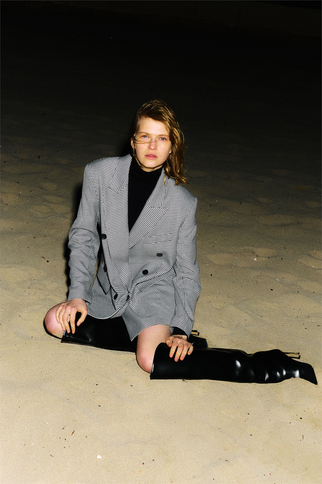 Двубортный блейзер оверсайз из тканого материала с пикообразными лацканами и пуговицами спереди. Накладки на плечах, нагрудный карман, накладные передние карманы и декоративные пуговицы на манжетах. Одиночная вентиляция на спине. На подкладке.