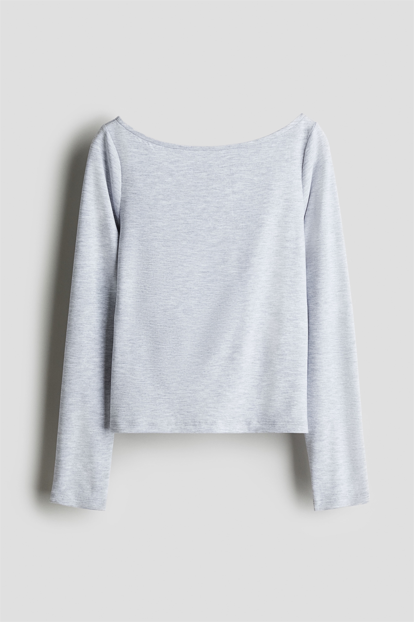 Топ с длинными рукавами из мягкого трикотажа с вырезом-лодочкой и бантиком на спине с вырезом.