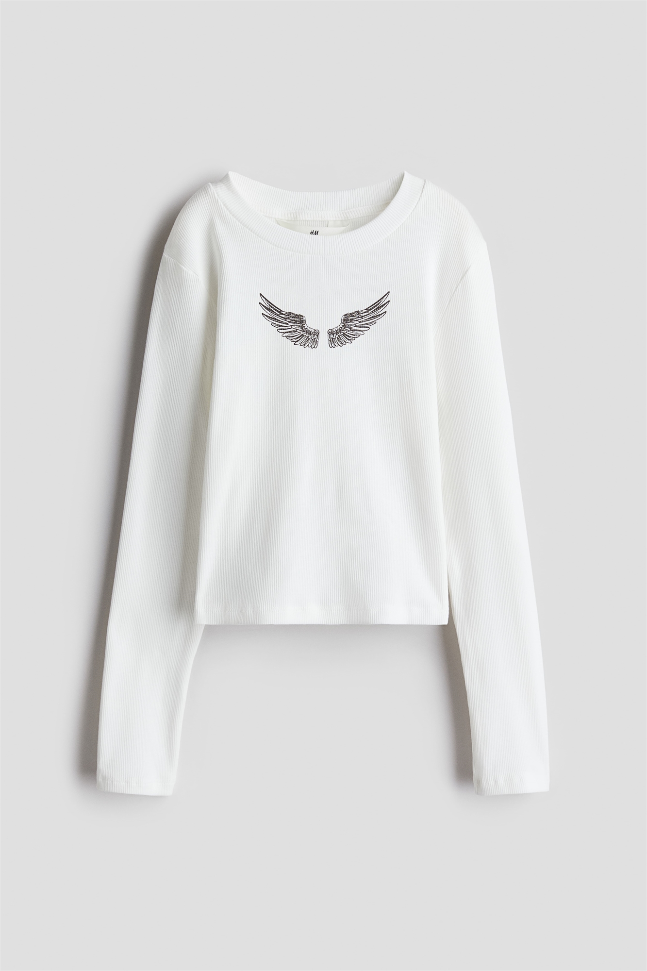 Топ из ребристого хлопкового джерси с круглым вырезом, длинными рукавами и прямым покроем.