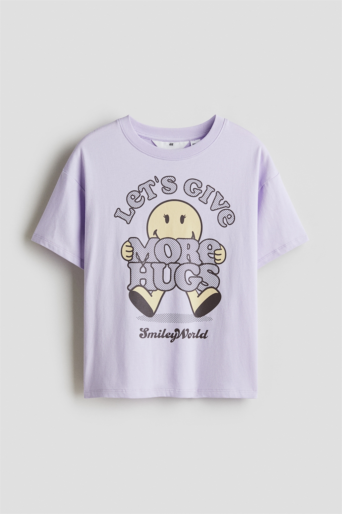 Футболка оверсайз из мягкого хлопкового джерси с принтом, круглым вырезом с ребристой отделкой и спущенными плечами.