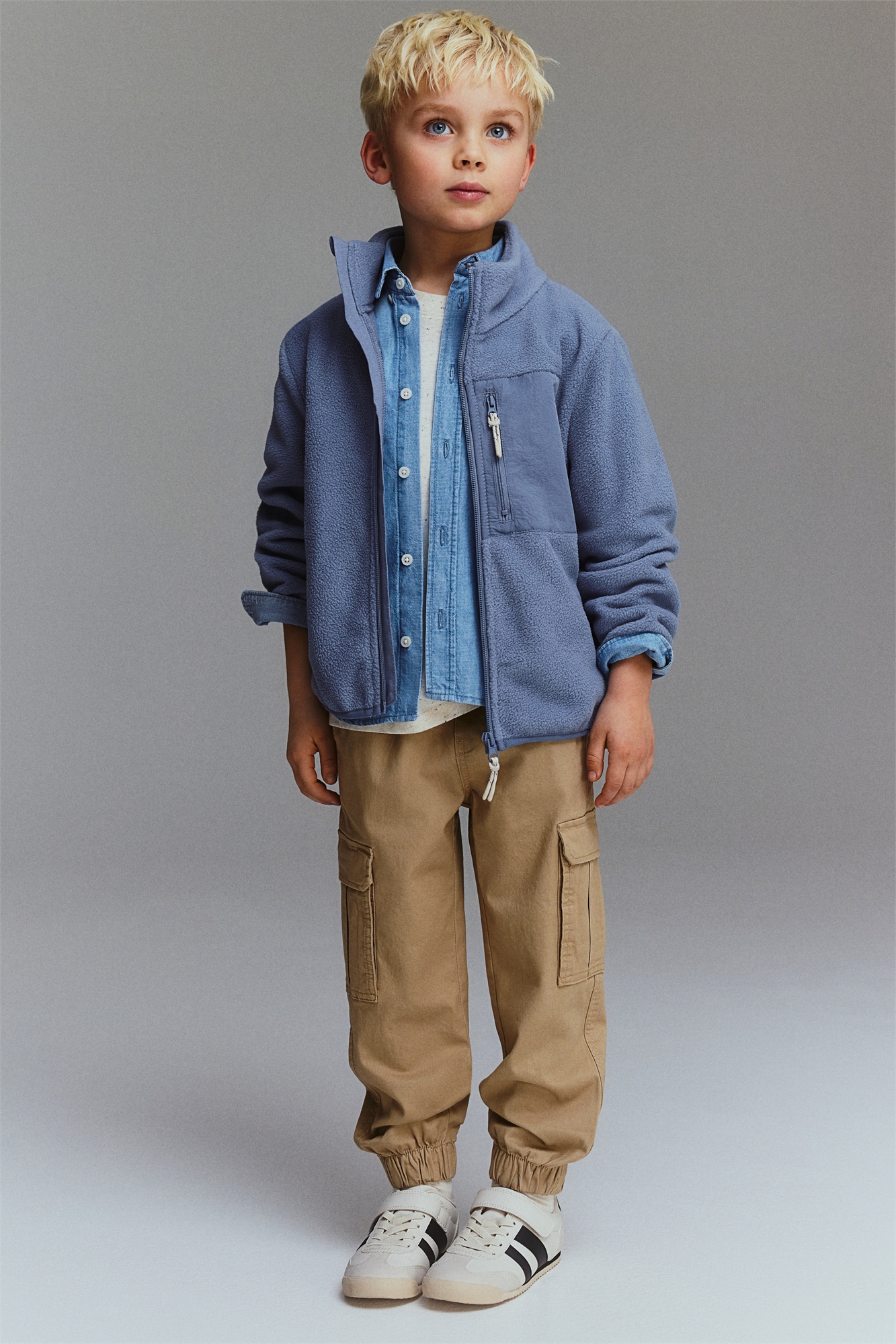 Куртка из теплого флиса с воротником-стойкой и застежкой-молнией с защитой подбородка. Нагрудный карман на молнии из ворсистой ткани, незаметные боковые карманы и окантовка из джерси на рукавах и подоле.