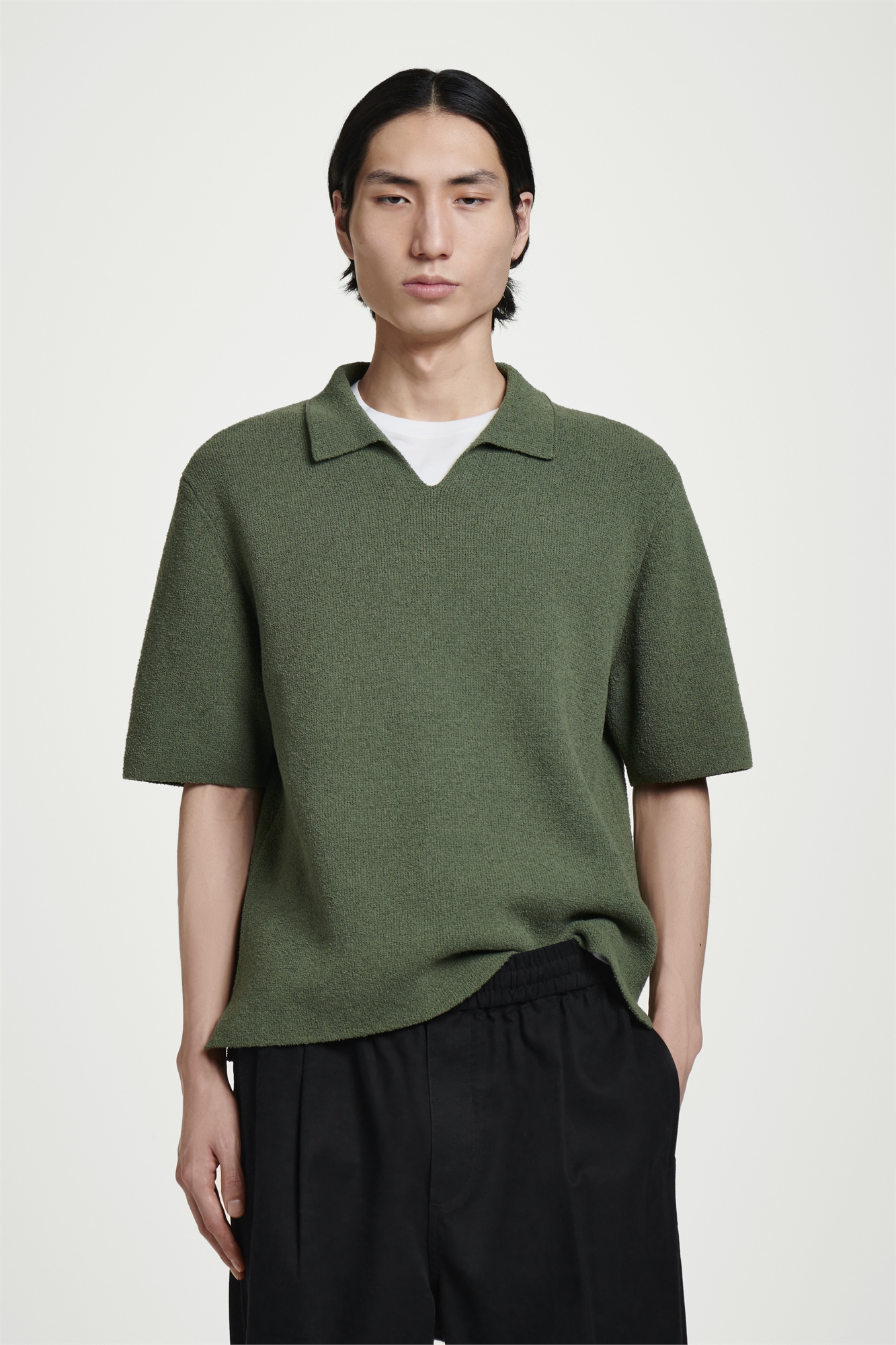 Эта рубашка-поло, выполненная из тактильной хлопчатобумажной смеси букле с непринужденным открытым воротником, привносит в образ непринужденность. Она имеет непринужденный крой и универсальный оттенок хаки. Свободный крой Переработанный нейлон (полиамид) снижает потребность в ограниченных природных ресурсах и сокращает выбросы парниковых газов Ткань: 78% хлопка, 22% переработанного полиамида (переработанный нейлон). Без учета отделки / Машинная стирка Длина спины размера M составляет 65 см / Модель носит размер M
