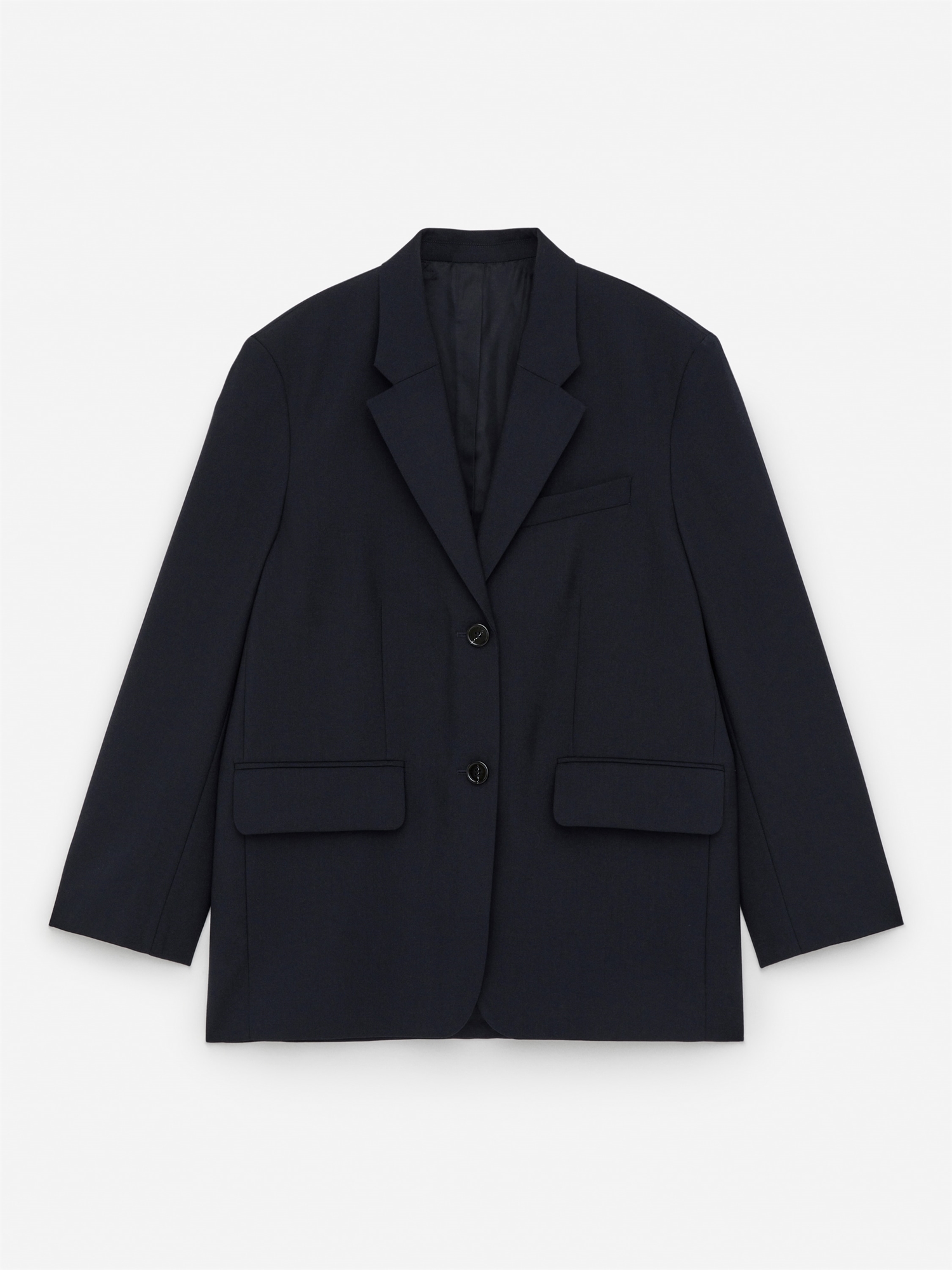 Блейзер большого размера из шерсти. Он сшит из хмеля, полностью на подкладке, с двойными карманами с клапанами и вентиляционными отверстиями по центру спины и подола рукавов.