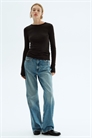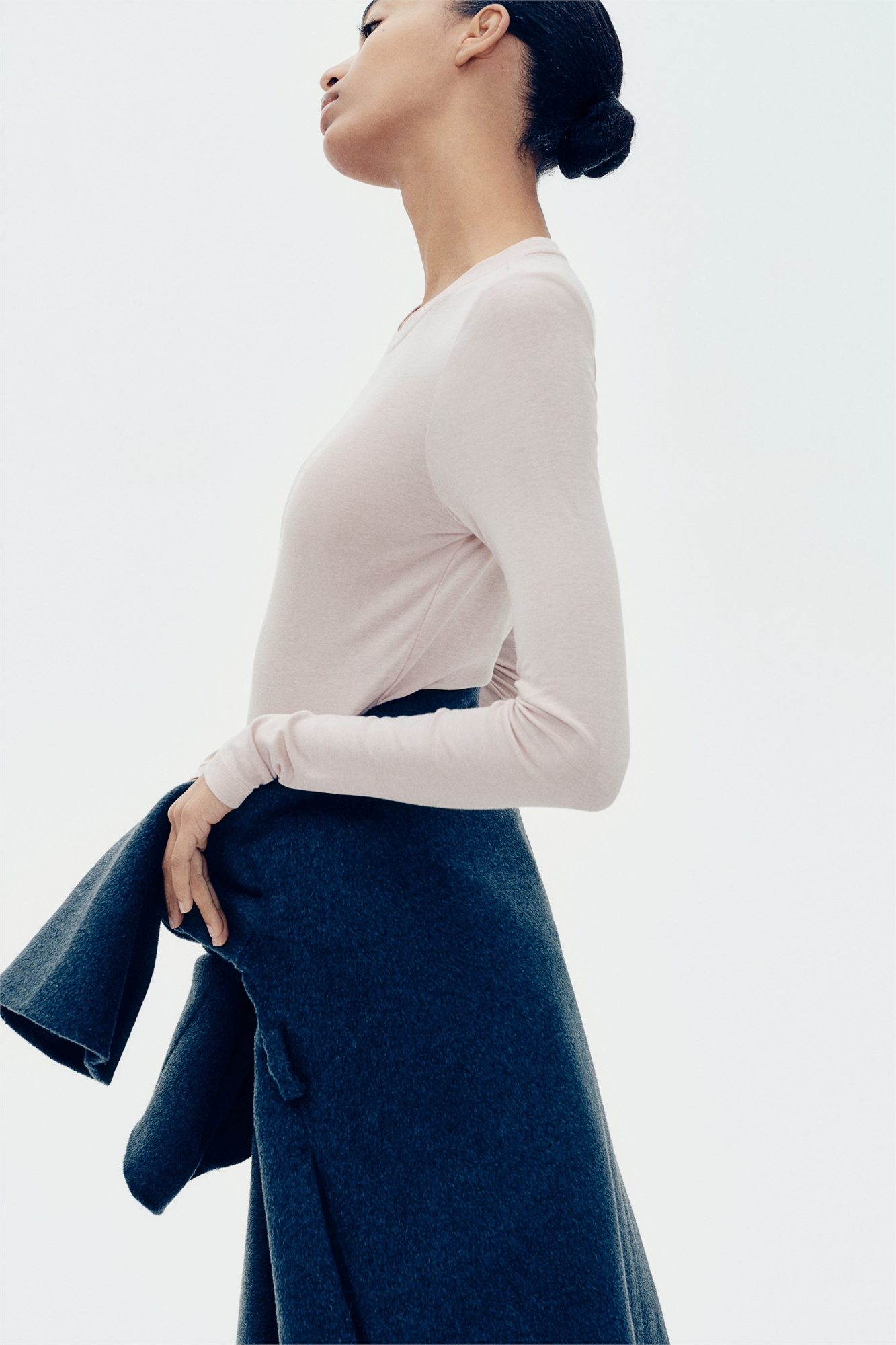 Облегающий топ из легкого хлопкового джерси пима с круглым вырезом и удлиненными рукавами.