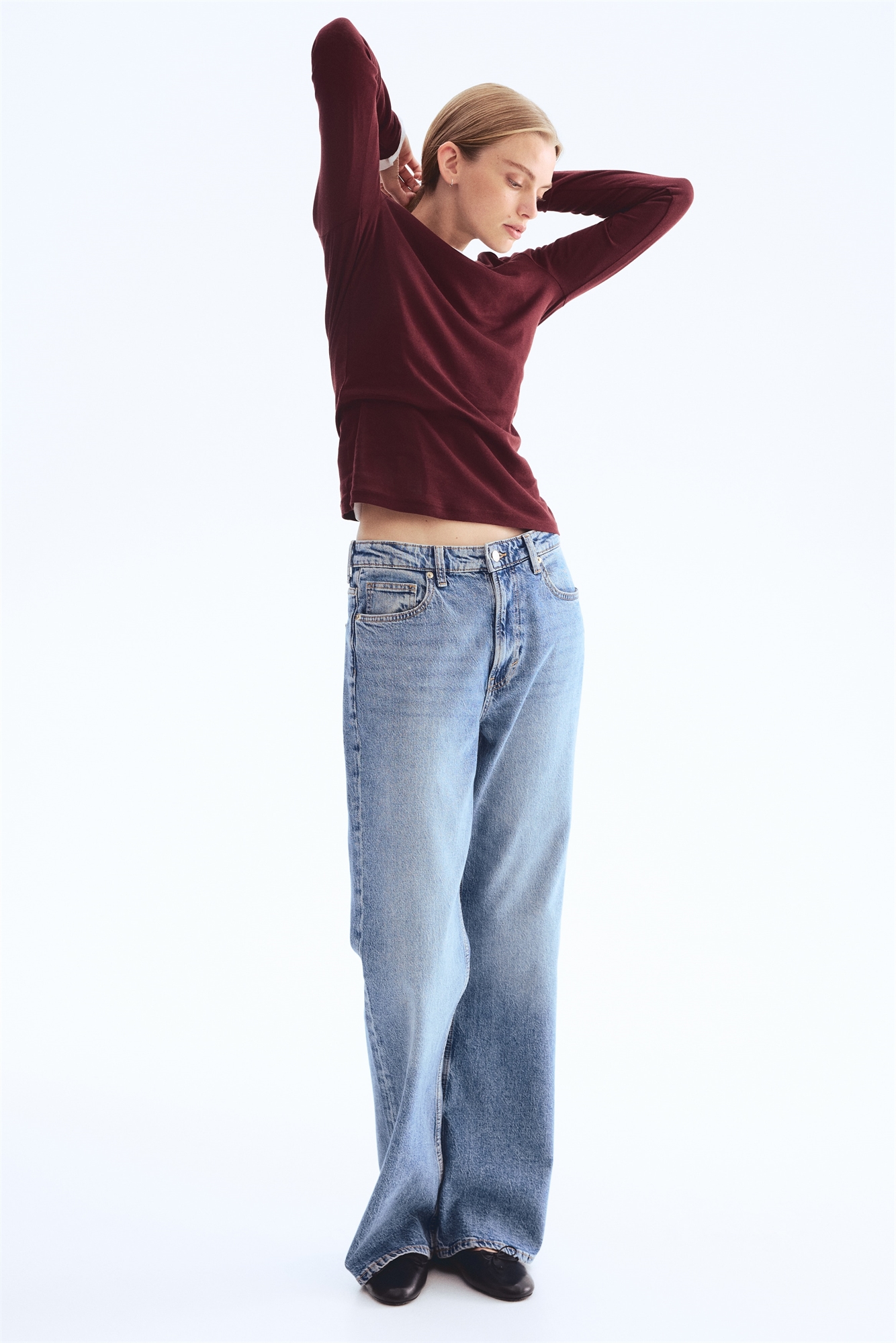 Облегающий топ из легкого хлопкового джерси пима с круглым вырезом и удлиненными рукавами.