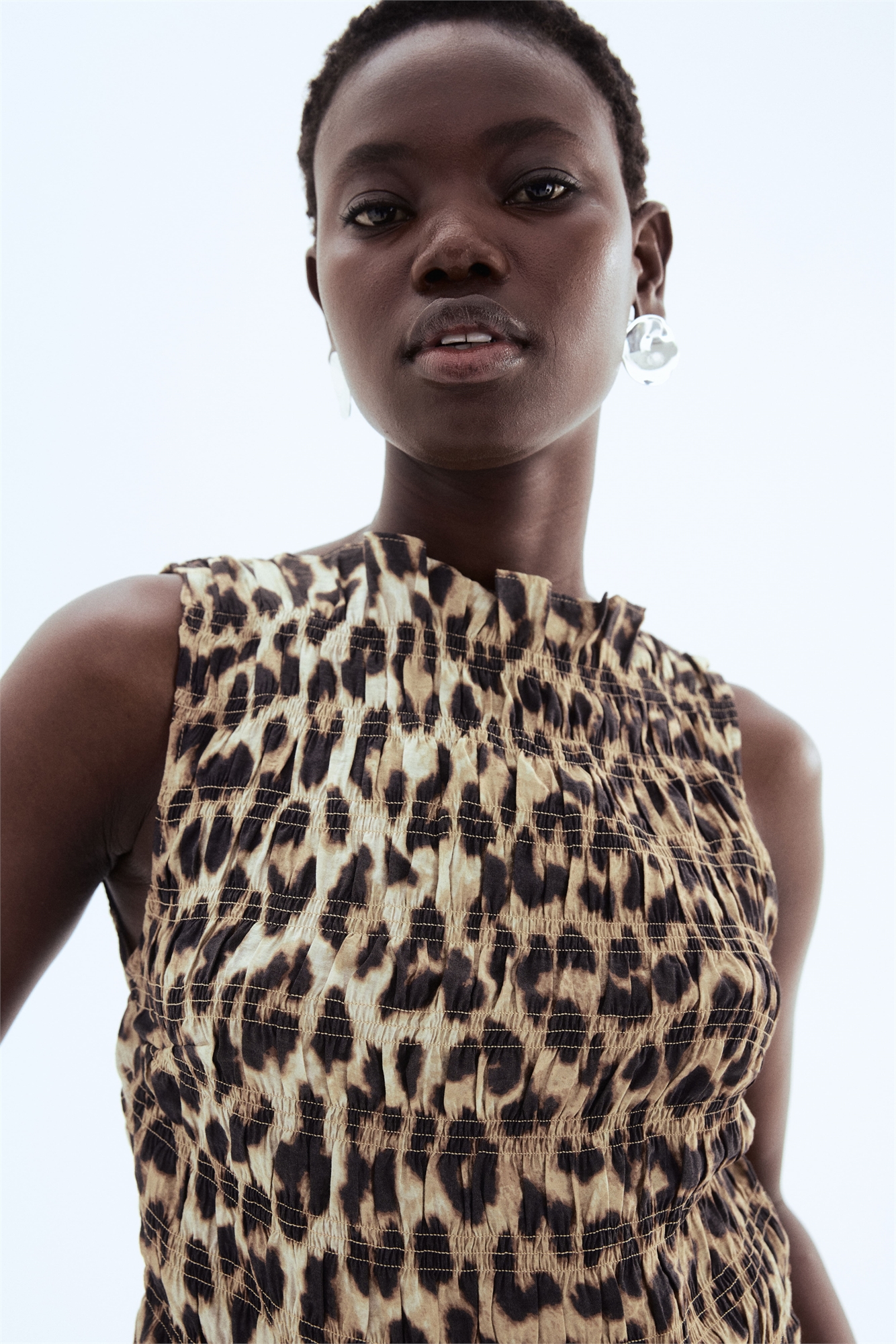 Облегающий топ без рукавов из тканого материала из смеси вискозы. Приталенный силуэт с вырезом-лодочкой и подолом-пеплумом.