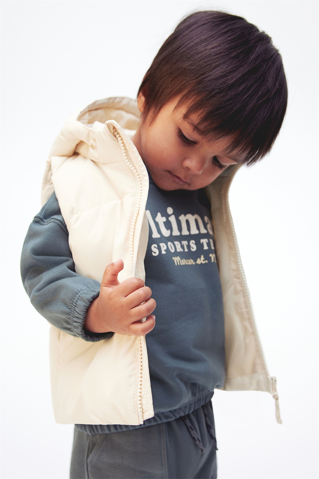 Мягкая жилетка со стеганым плетением и съемным капюшоном. Воротник-стойка с флисовой подкладкой и застежка-молния спереди с защитой подбородка от натирания. На подкладке.
