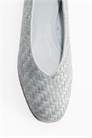 Балетки из плетеной ткани с покрытием и слегка потертым видом. Закругленные мыски и петля сзади. Подкладка из джерси. Каблук 0,6 см.