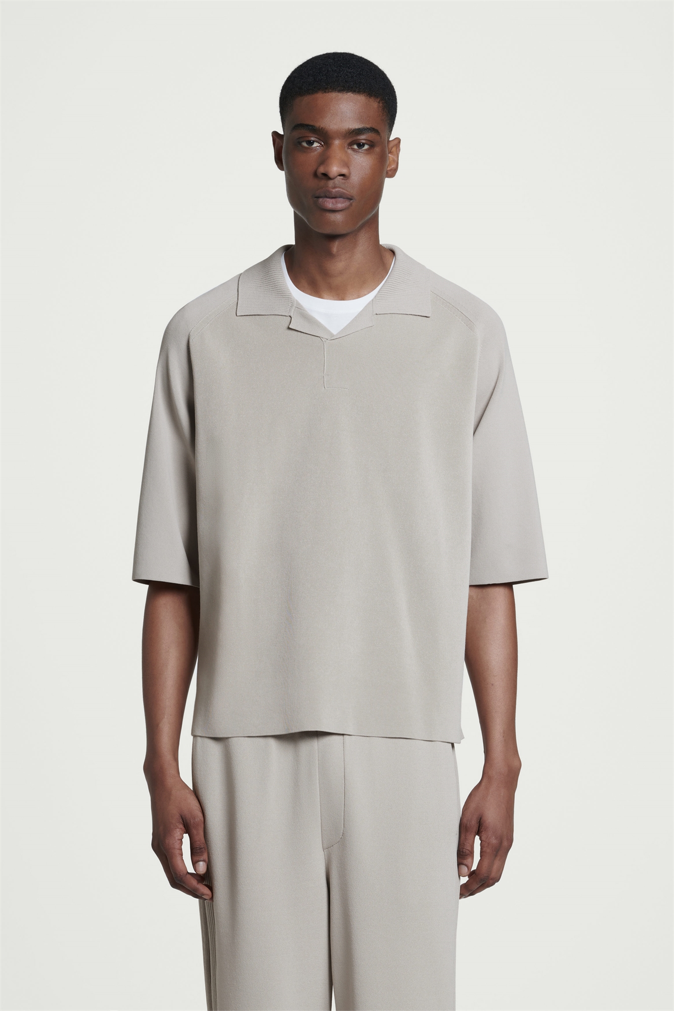 В этом сезоне команда мужской одежды предлагает изысканный подход к кодам athleisure. Эта футболка-поло связана из двухлицевой вискозной ткани, окрашенной в тональные оттенки крота, и имеет ребристый открытый воротник, разделенный подол и отделку в виде трубок. Подойдите к нему в комплекте с соответствующими спортивными штанами. Расслабленный крой Переработанный нейлон снижает потребность в ограниченных природных ресурсах и сокращает выбросы парниковых газов Ткань: 52% вискозы, 32% переработанного полиамида (переработанный нейлон), 14% хлопка, 2% переработанного эластана. Без учета отделки / Машинная стирка Длина по спинке для размера M составляет 64,5 см / Модель носит размер M