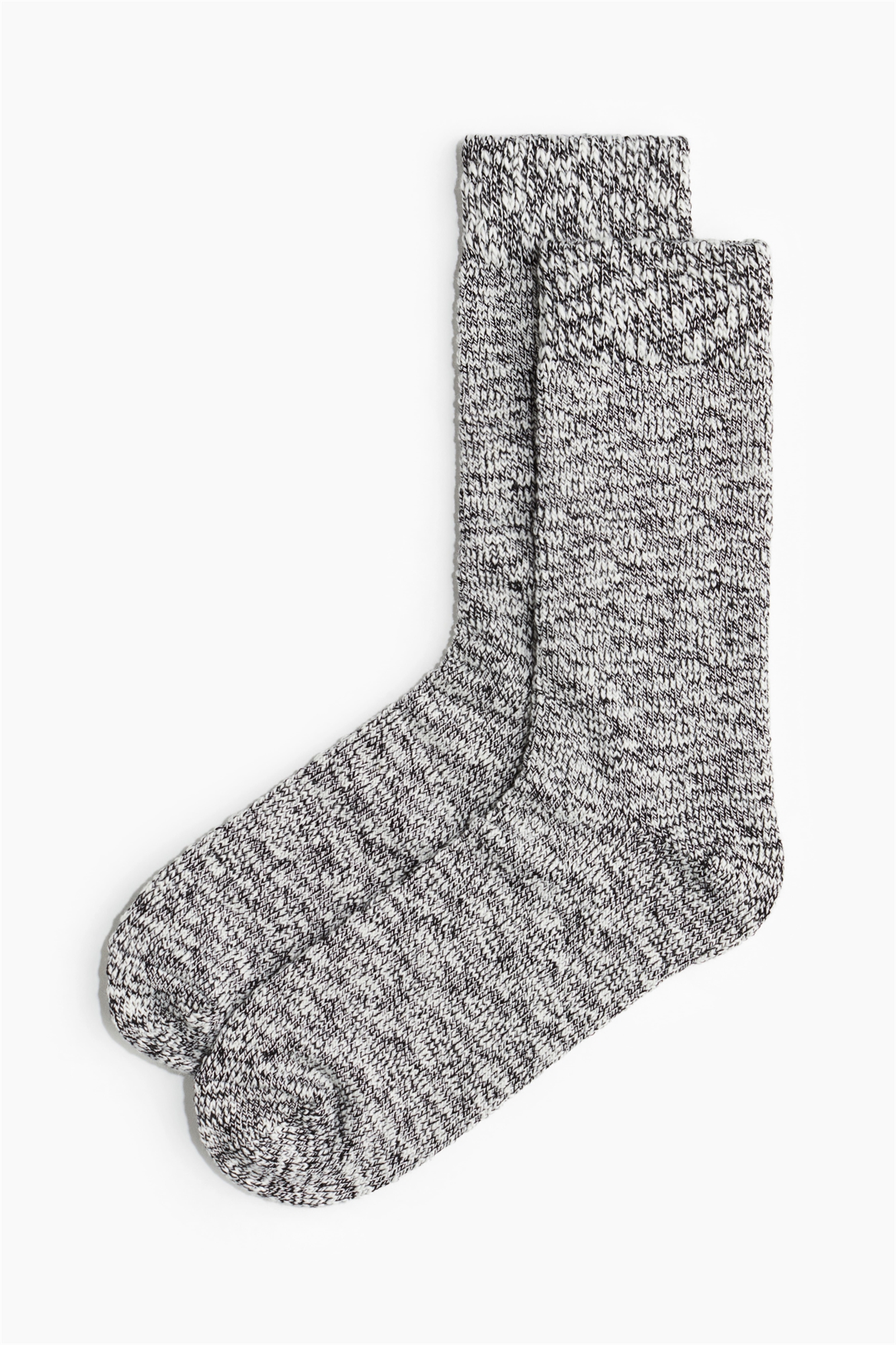 Носки из хлопкового микса в рубчик с эластичной вставкой в верхней части.