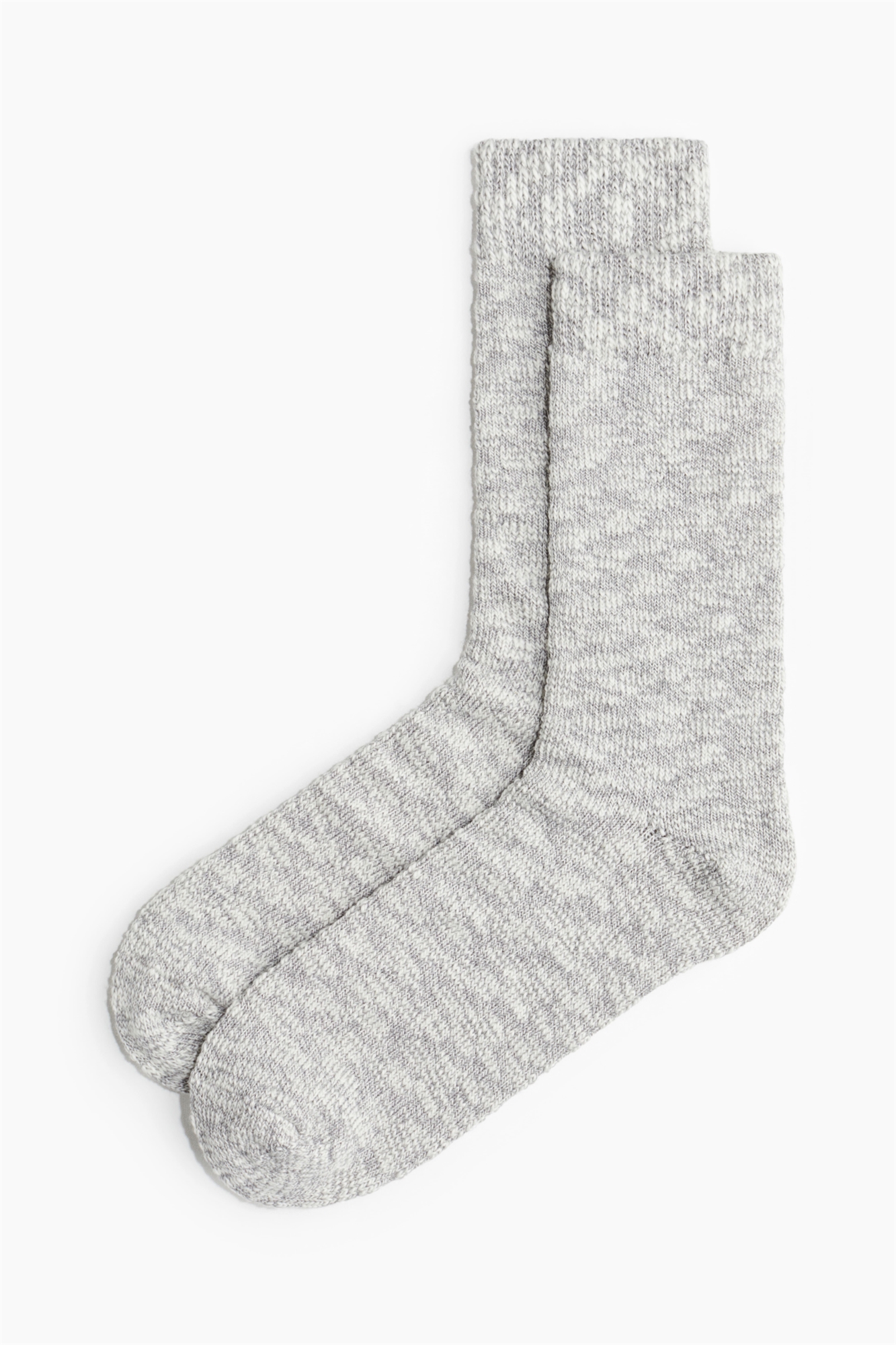 Носки из хлопкового микса в рубчик с эластичной вставкой в верхней части.