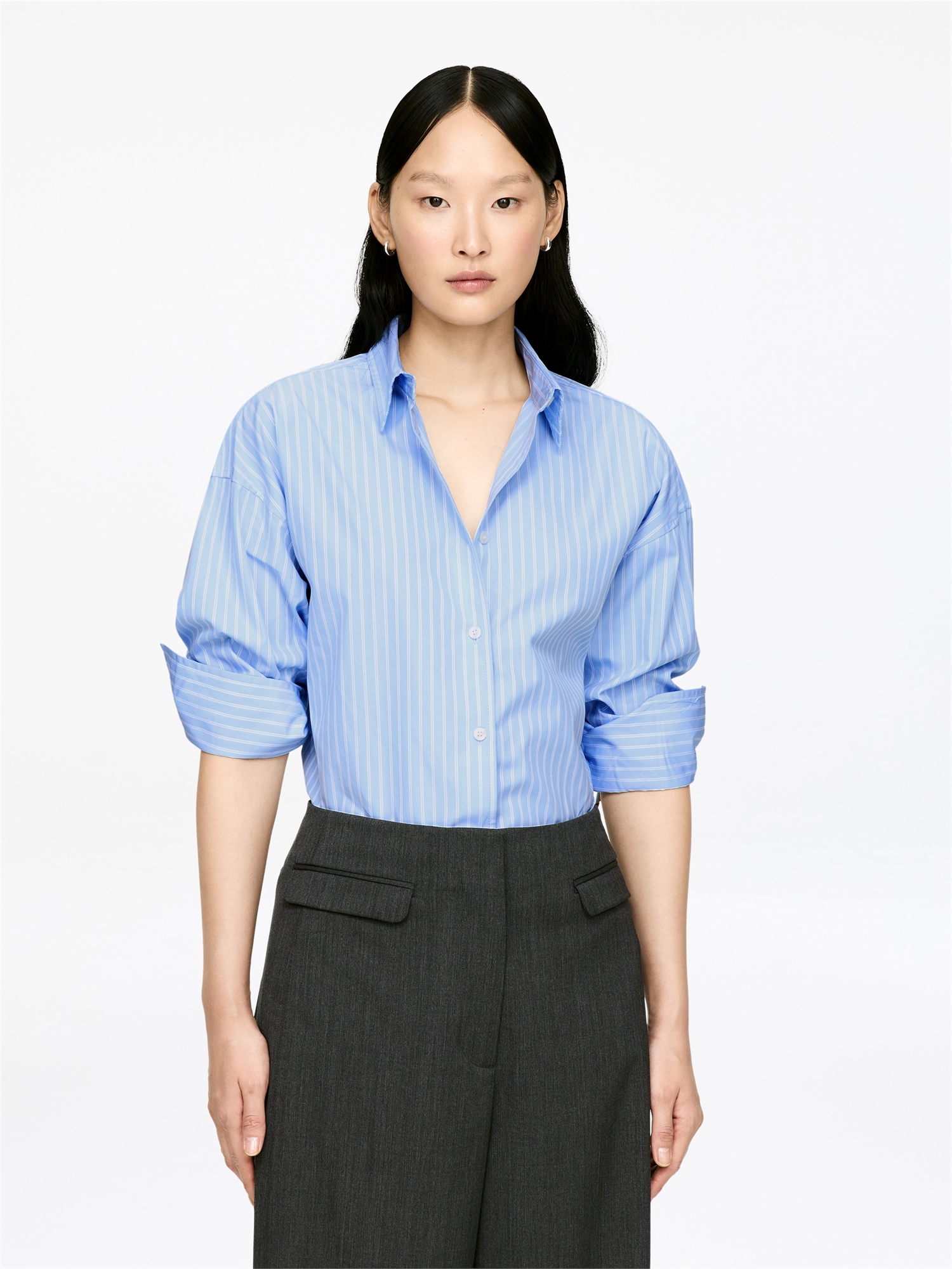 Рубашка на пуговицах сшита из хлопка. С широкими рукавами и широкими манжетами. Расслабленный крой.