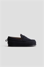 Лоферы из ворсистой ткани с ремешком через стопу и мокасиновым швом спереди. Подкладка из джерси и стелька из технической пены для дополнительного комфорта.