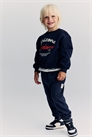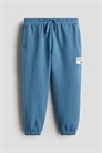 Джоггеры из легкой толстоватой ткани из хлопка. Эластичный пояс с завязками, боковые карманы и эластичная резинка по краям.