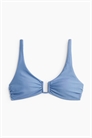Бикини-топ без подкладки, с регулируемыми бретелями, U-образной металлической проволокой по центру бюста и чашечками со съемными вкладышами, придающими форму бюсту и обеспечивающими хорошую поддержку. Завязки сзади.