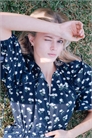 Блузка из воздушного хлопкового полотна. Круглый вырез с завязками-спагетти, пуговицы спереди и объемные пышные рукава длиной 3/4. Завязки на талии и расклешенный живот.