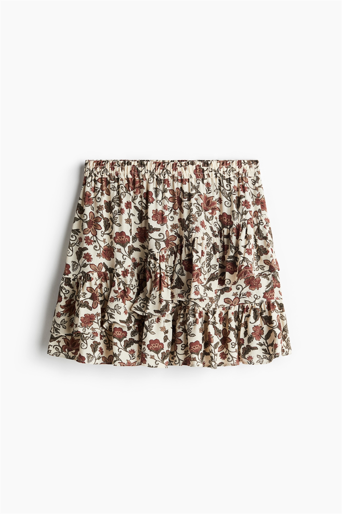 Юбка-мини с воланами из воздушной вискозы с узором по всей поверхности.