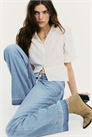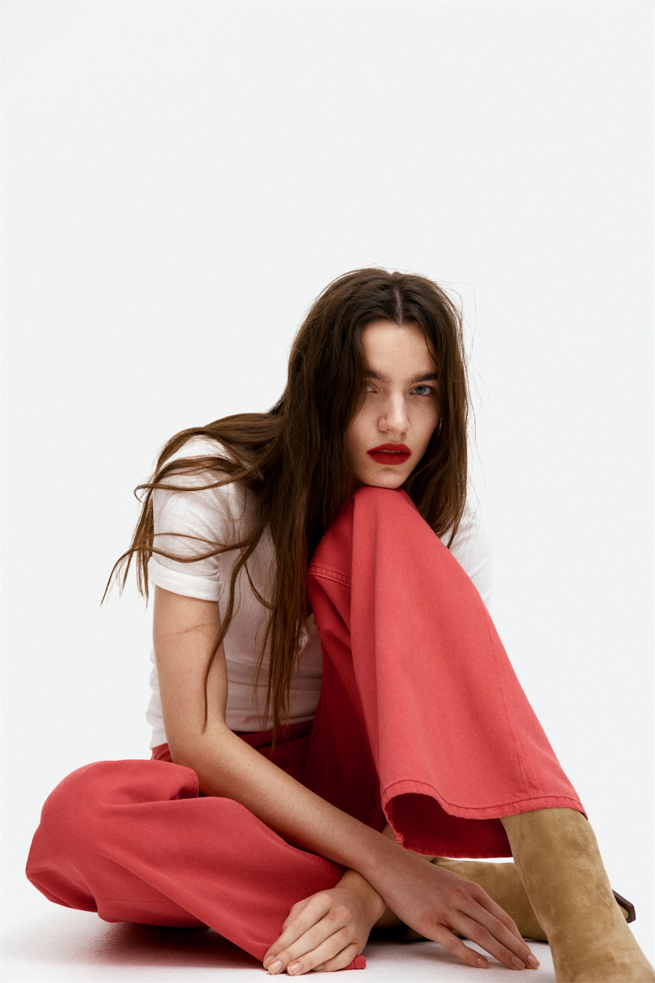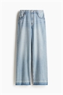 Джинсы из супермягкого и легкого денима. Широкие штанины с обычной посадкой от талии до бедер и широким кроем от бедра до подола. Высокая талия с ширинкой на молнии и пуговице. Передние карманы с отделкой тесьмой, карман для монет и эффект стирки сзади, напоминающий задние карманы. Необработанные края подола. Регулярная длина, рассчитанная на то, чтобы практически не мешать. Широкий силуэт, который всегда выглядит привлекательно.