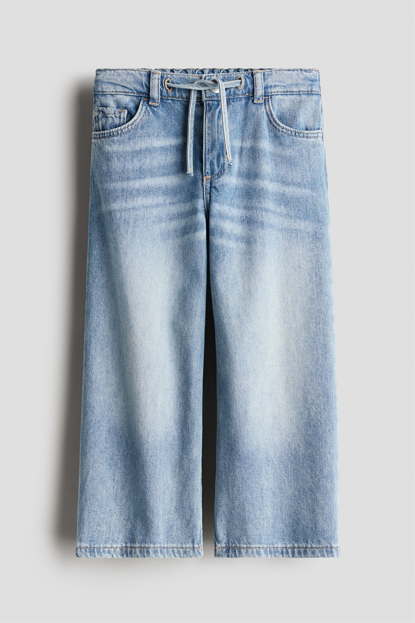 Брюки с 5 карманами из моющегося хлопкового денима. Свободный крой с утягивающим шнурком на талии спереди и эластичной вставкой сзади. Ширинка на молнии с застежкой на кнопки и широкие ноги.