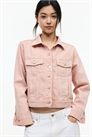 Куртка в стиле дальнобойщика из жесткого хлопкового денима с воротником, металлическими пуговицами спереди, направленными вперед плечевыми швами и ярмом спереди и сзади. Слегка спущенные плечи, манжеты на пуговицах, накладные нагрудные карманы на пуговице и неброские передние карманы. Регулируемая закладка с пуговицами по бокам подола.
