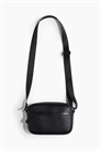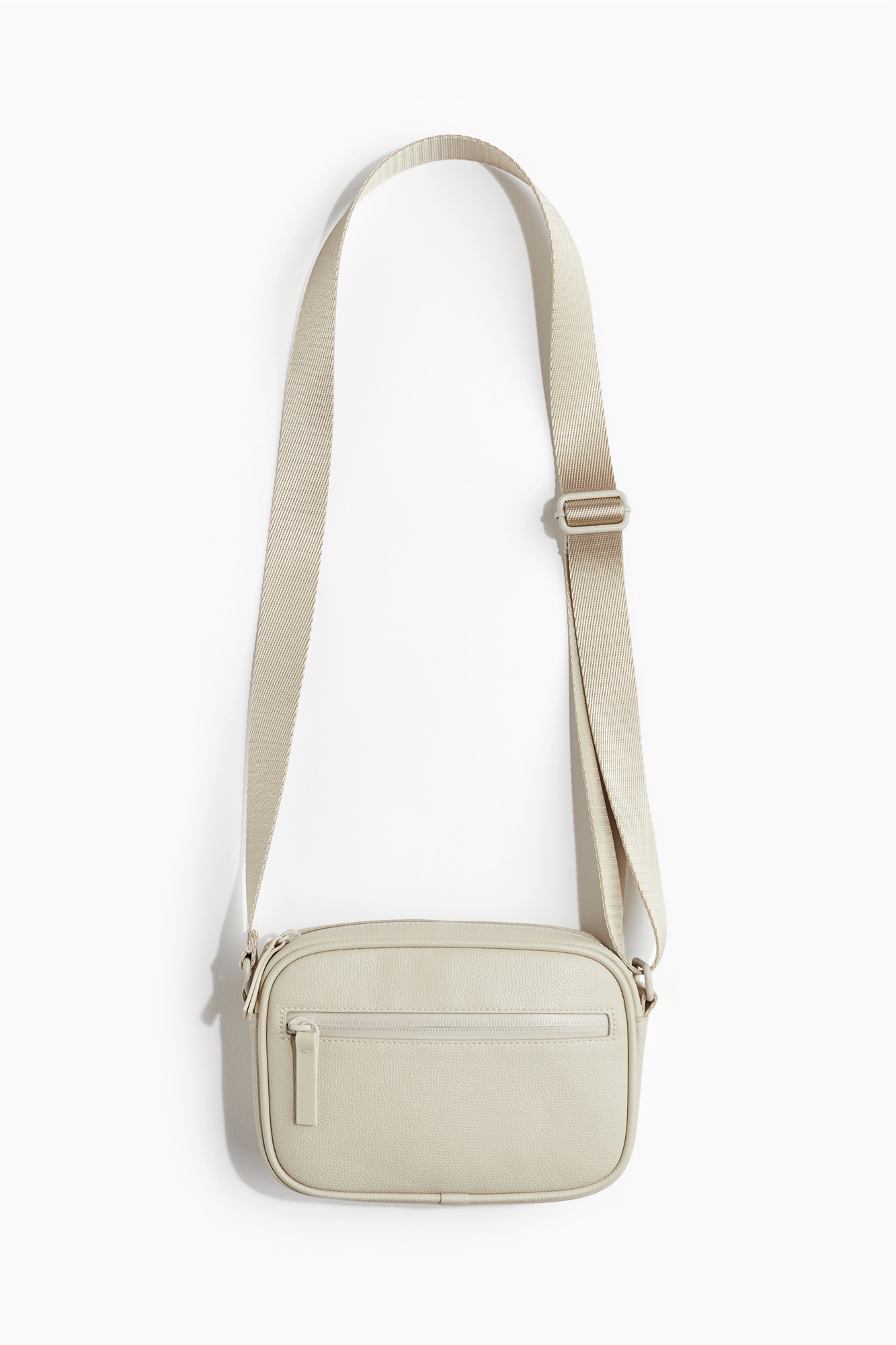 Сумка-кроссбоди из ткани с покрытием, застежка-молния сверху и регулируемый плечевой ремень с металлической пряжкой. Одно внешнее отделение на молнии и два открытых внутренних отделения. На подкладке. Глубина 5,5 см. Высота 14 см. Ширина 22,5 см.
