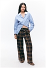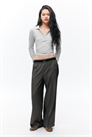 Пара свободных костюмных брюк с низкой талией, эластичным поясом с логотипом, косыми боковыми карманами, задними накладными карманами и передними складками. Свободный крой. Заниженная талия. Эластичный пояс. Прошитый лейбл. Косые карманы. Прорезные карманы. Прессовые складки.