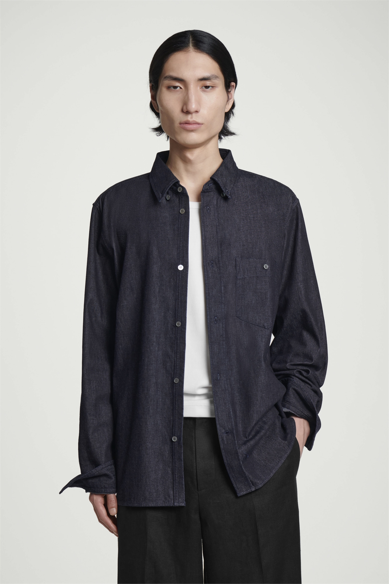 Эта рубашка классического синего цвета индиго изготовлена из мягкого хлопка-чембрея, придающего ей джинсовый вид. Заостренный воротник, перламутровые пуговицы и накладной карман на груди. Регулярный крой Застежка на пуговицы Органический хлопок выращен из негенетически модифицированных семян без использования химических удобрений и пестицидов Состав: 80% органический хлопок, 20% переработанный хлопок. Без учета отделки / Машинная стирка Длина по спинке для размера M составляет 77,5 см / Модель носит размер M