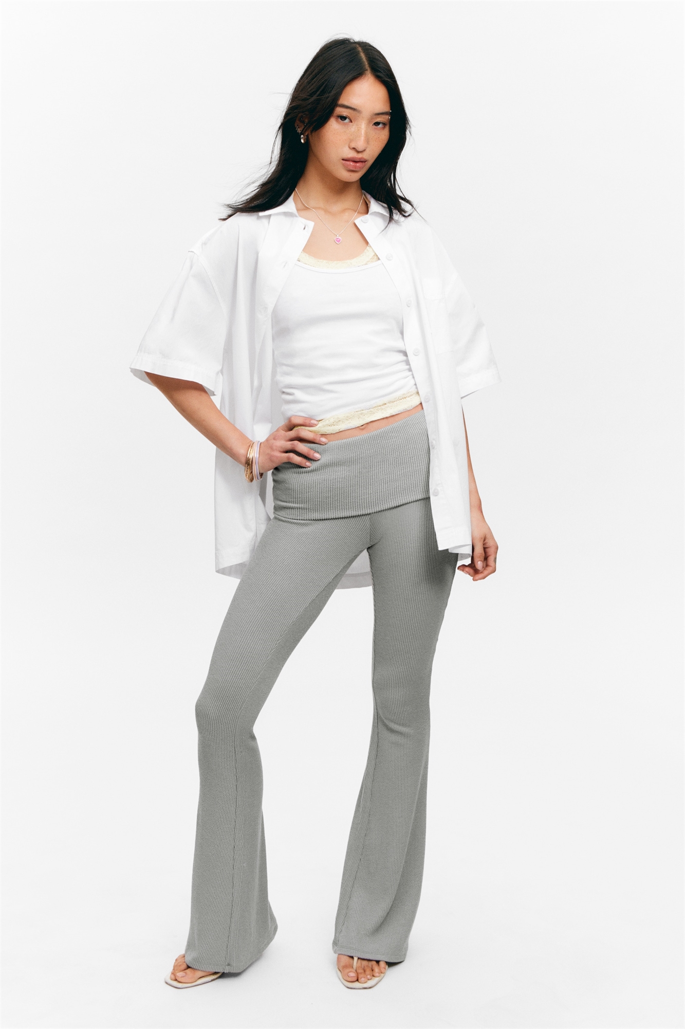 Расклешенные ребристые брюки с низкой талией
