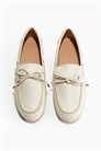 Мокасины из натуральной кожи со шнуровкой в верхней части и швом мокасина спереди. Подкладка из хлопкового холста и кожаная стелька.