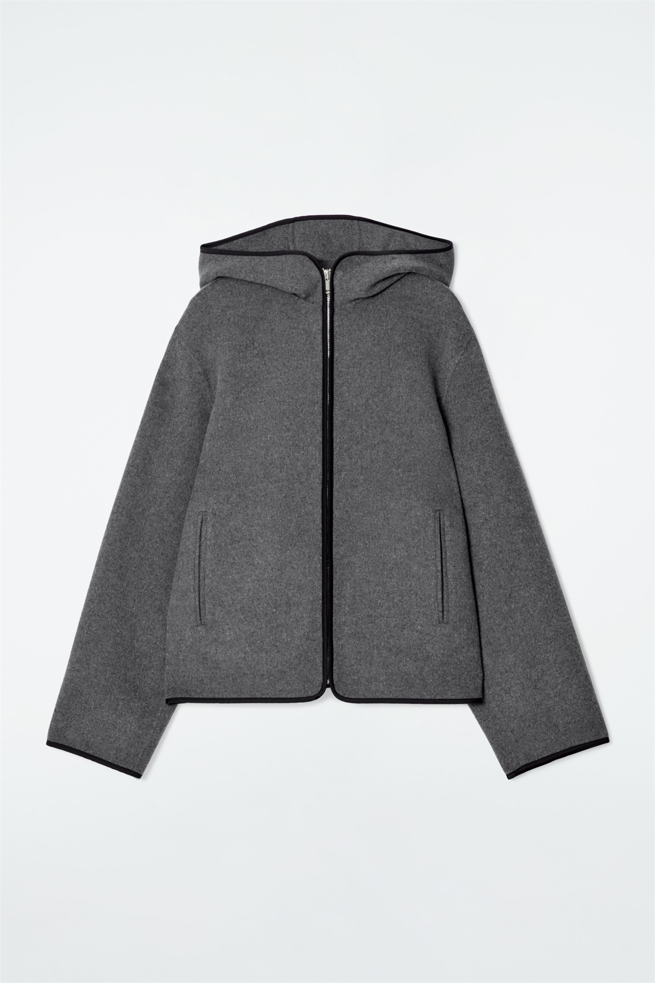 Шерстяной жакет с капюшоном и двойной подкладкой