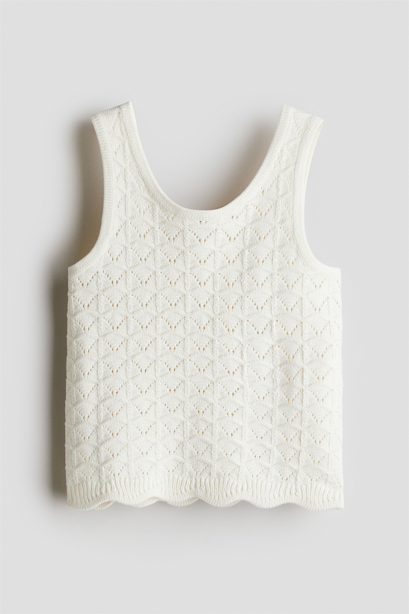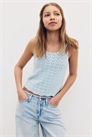 Жилет из мягкого трикотажа пуантель с ребристыми краями, круглым вырезом и обшарпанным подолом.