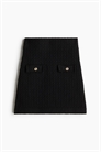 Короткая приталенная юбка из мягкого трикотажа пуантель со скрытой резинкой на талии и декоративными клапанами карманов с фактурной пуговицей спереди.