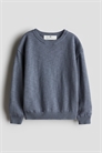 Джемпер свободного покроя из мягкого хлопка тонкой вязки с круглым вырезом в рубчик, спущенными плечами и длинными рукавами. Ребристые манжеты и подол.