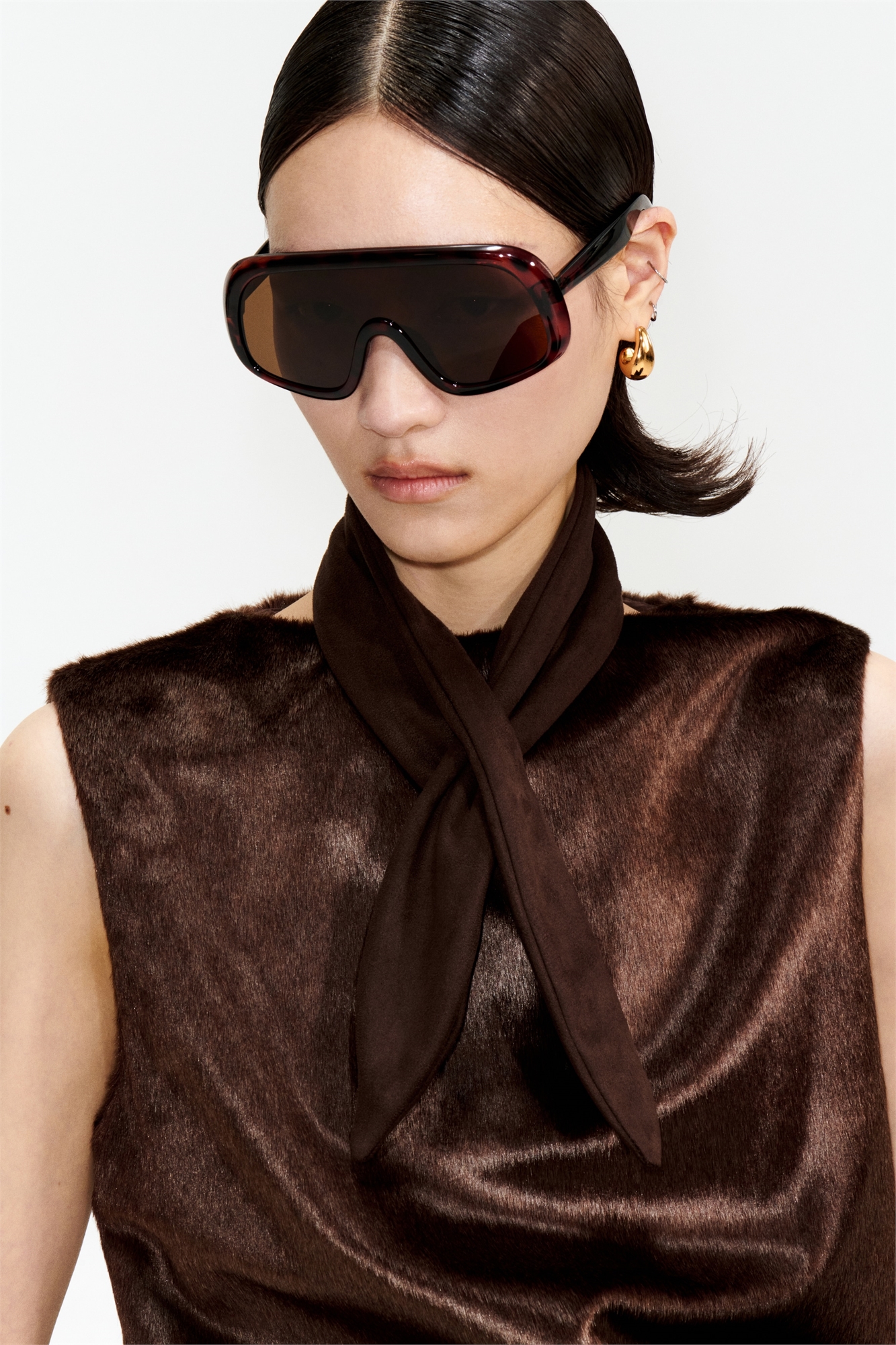Короткий шарф из тканого материала с мягким ворсом. Заостренные концы и отверстие в виде замочной скважины для продевания другого конца.