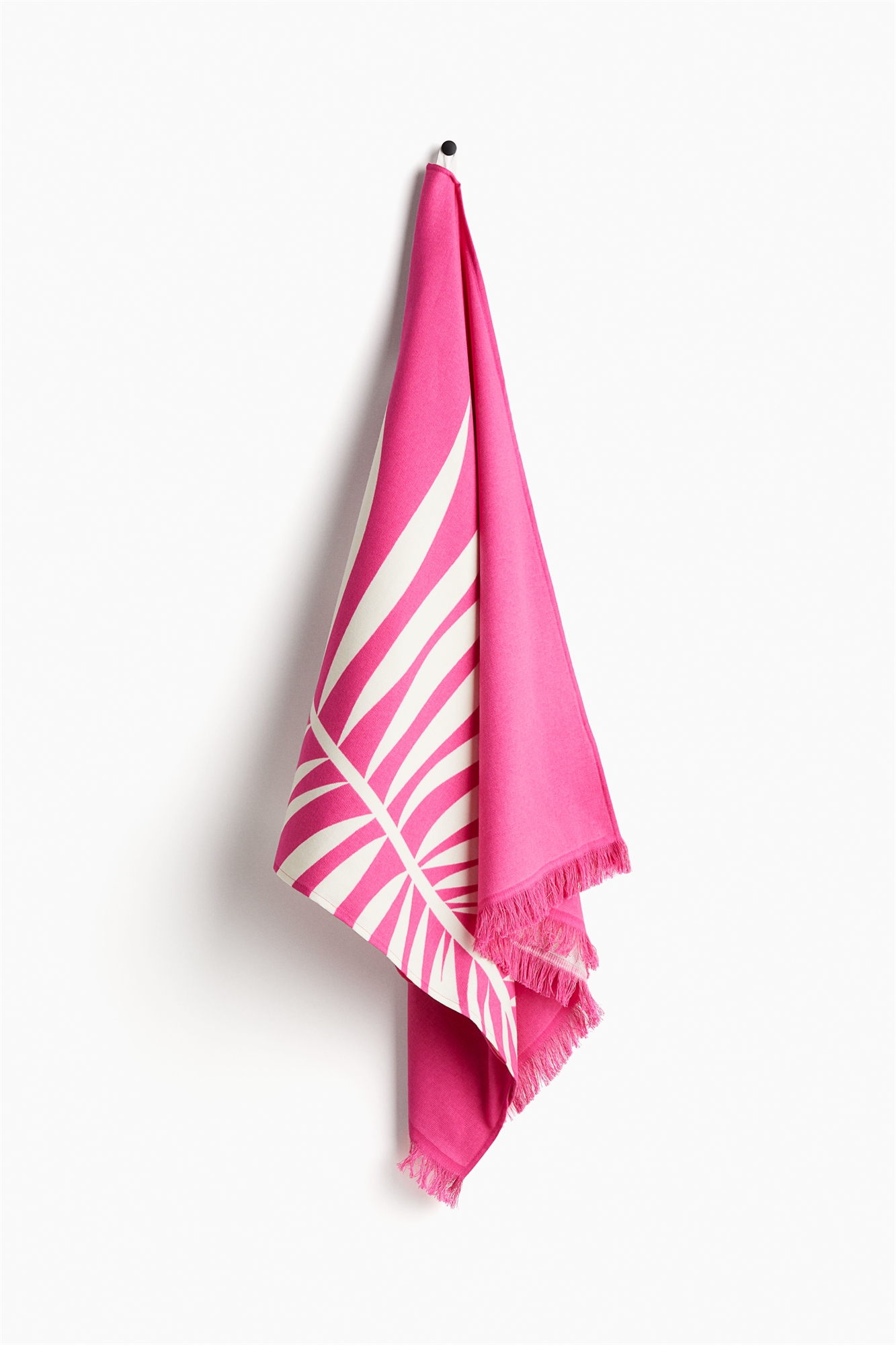 Пляжное полотенце из мягкой хлопковой махры с необработанной бахромой по коротким сторонам и вешалкой на одной длинной стороне. 380 гсм.