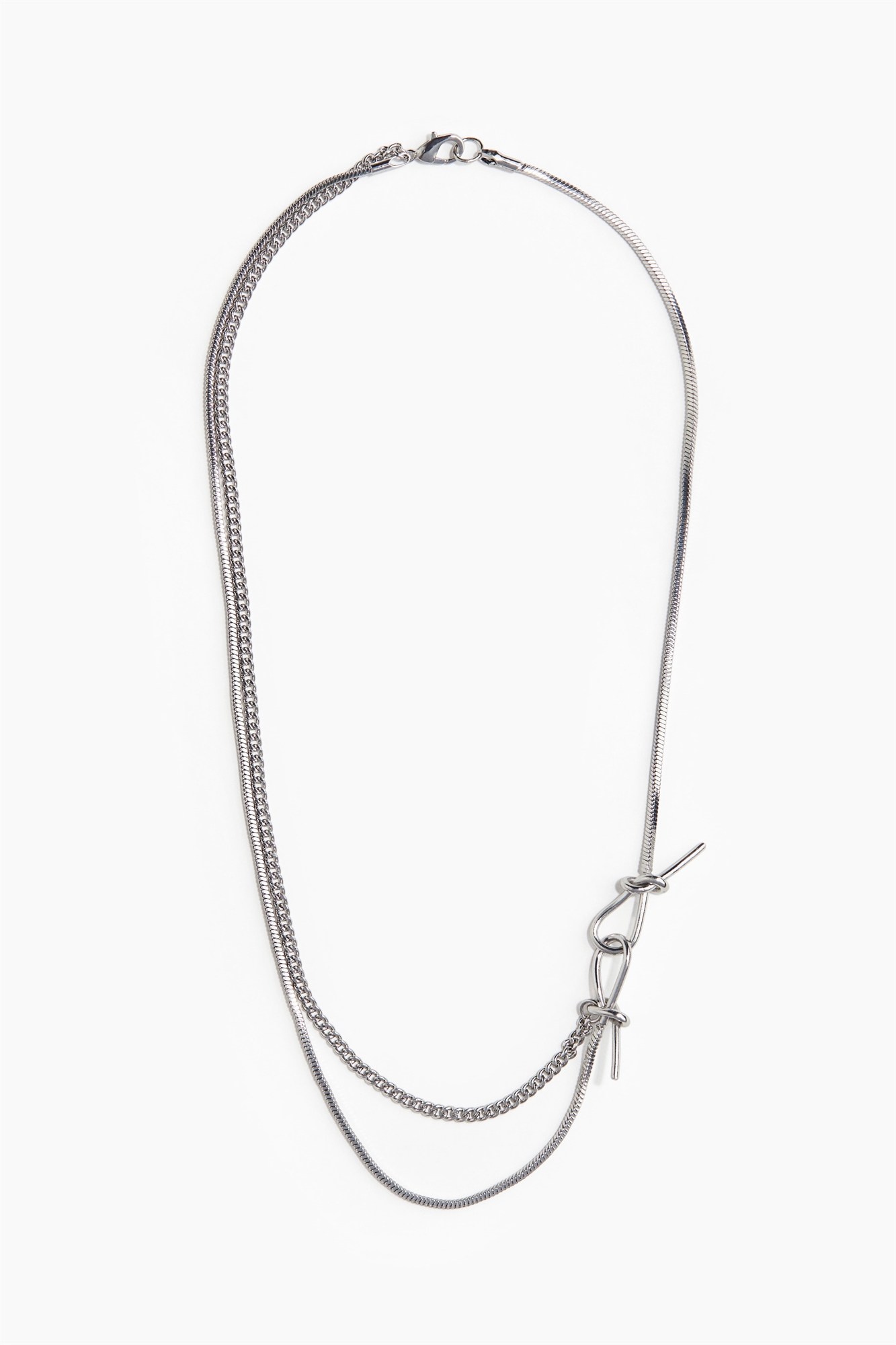 Ожерелье с застежкой-триггером из металлических звеньев разной толщины и дизайна.