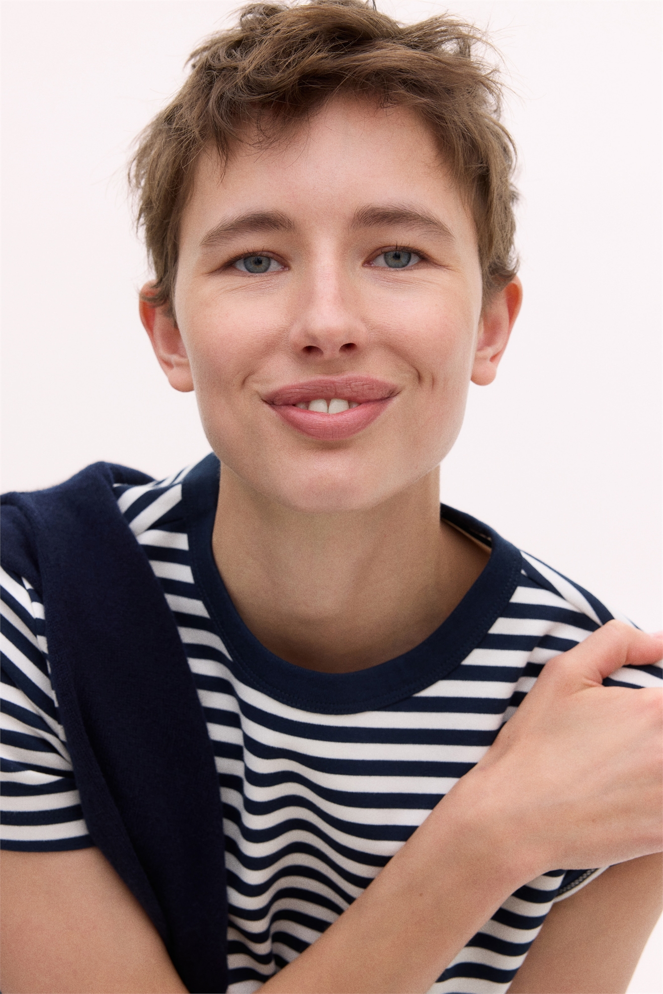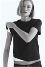Футболка из плотного хлопкового джерси с круглым вырезом с ребристой отделкой.
