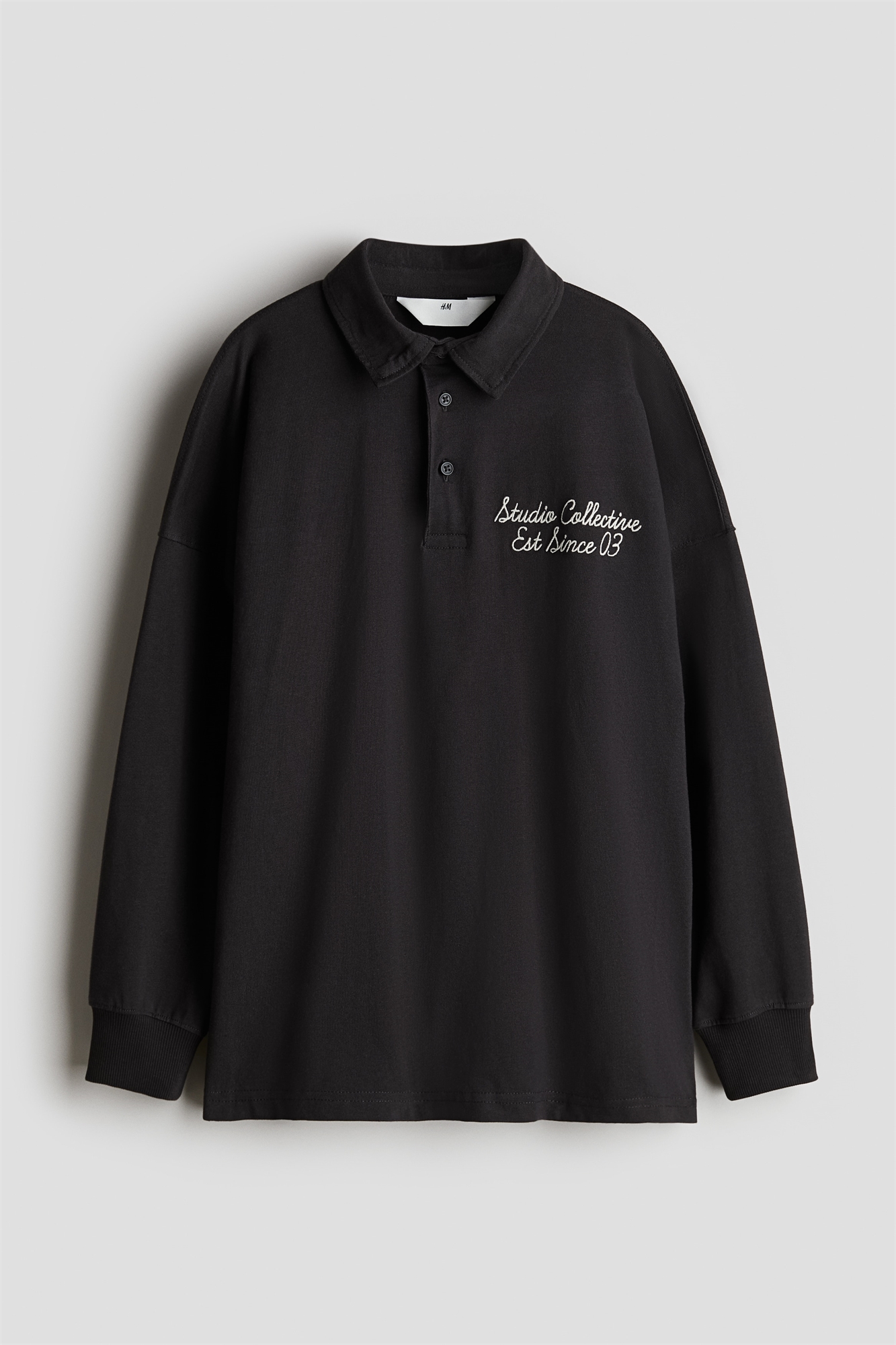 Рубашка для регби из прочного хлопкового джерси с воротником, застежкой на пуговицах, спущенными плечами и длинными рукавами с ребристыми манжетами. Короткие разрезы по бокам подола.