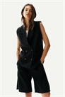 Приталенный жилет из льна и вискозы. Лацканы с вырезами, двубортная передняя часть, тонкие подплечники и карманы спереди. На подкладке.