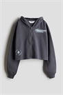 Толстовка с капюшоном из принтованной толстовочной ткани с мягкой начесом внутри. Капюшон на подкладке, застежка-молния спереди, спущенные плечи и ребристые манжеты.